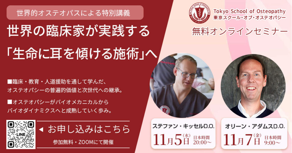 臨床・教育・人道援助を通して学んだ、オステオパシーの普遍的価値と次世代への継承について語ります。