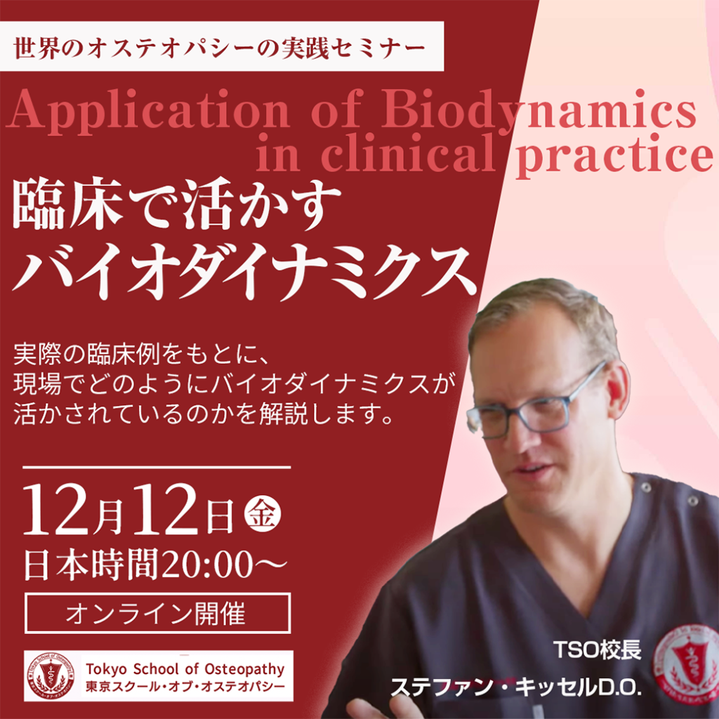 本日は、当校のカリキュラムの詳細とともに、先週のトークセッションでも触れた「バイオダイナミクス」について、そしてオステオパシーがどのように現代医療の中に統合されているのかについてお話しします。